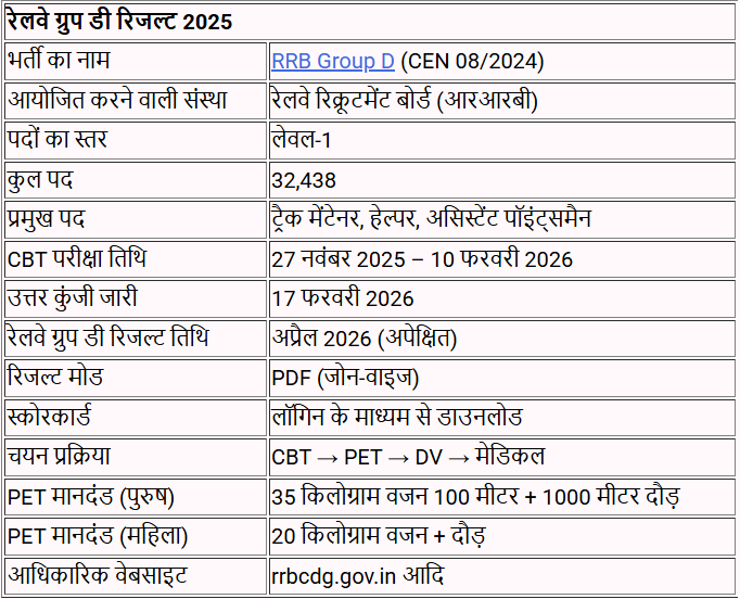 रेलवे ग्रुप डी भर्ती रिजल्ट 2025-26